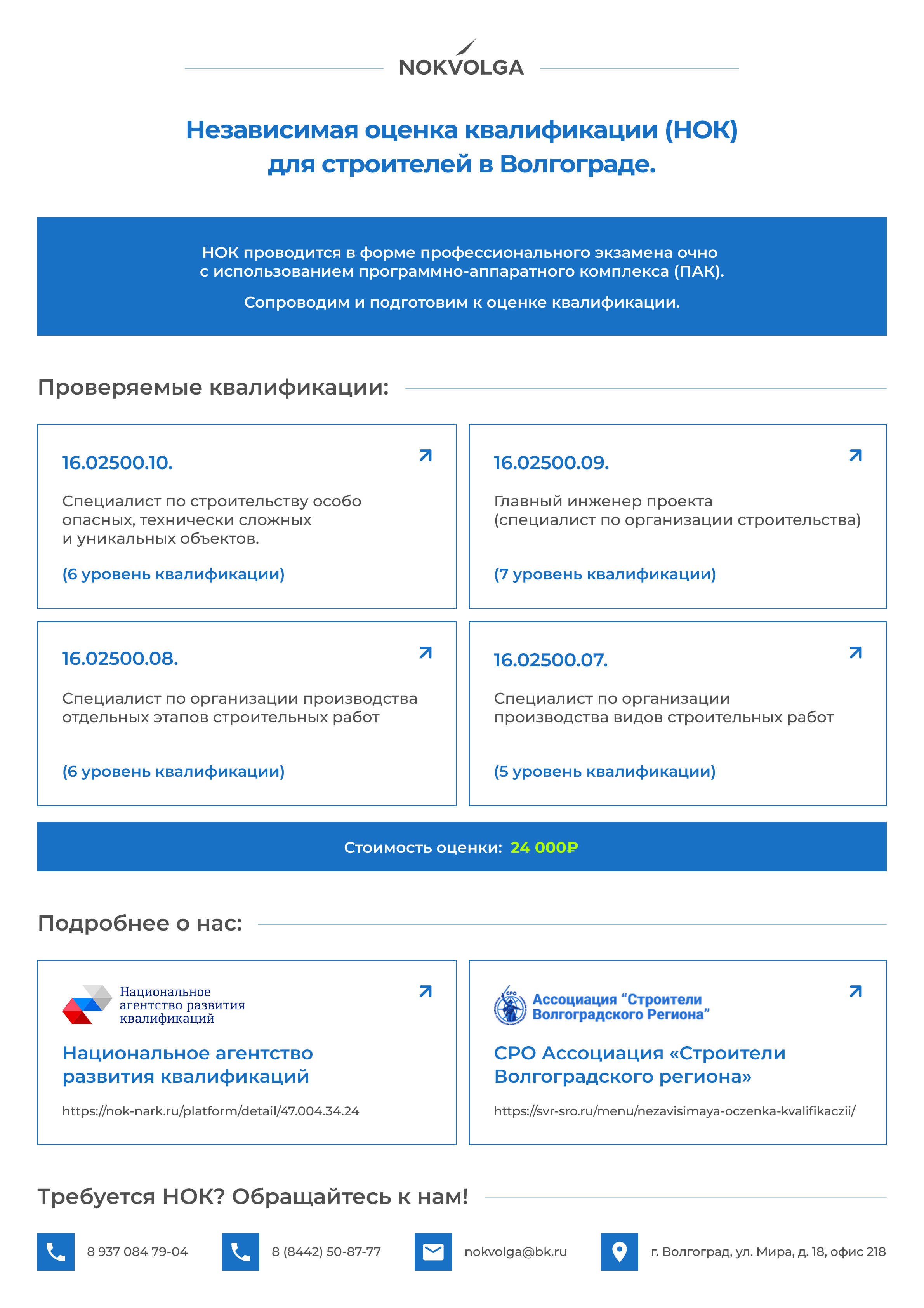 В Волгограде, для обеспечения проведения НОК специалистов НРС организована работа экзаменационной площадки (подробнее в приложении).